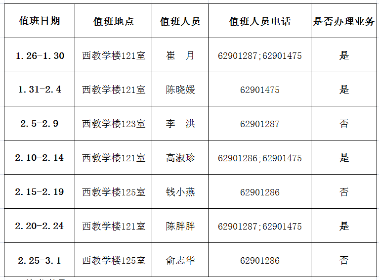 附件:档案馆2026年寒期人员值班表